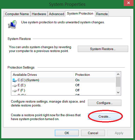 In this article, I am gonna show you how to create a system restore point manually in Windows 7&8.1. Just follow the steps below: