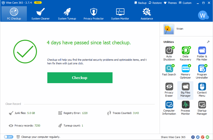 After launching Wise Care 365 in your computer, you will find its user-friendly interface, I am sure that you will have an unusual experience with it.